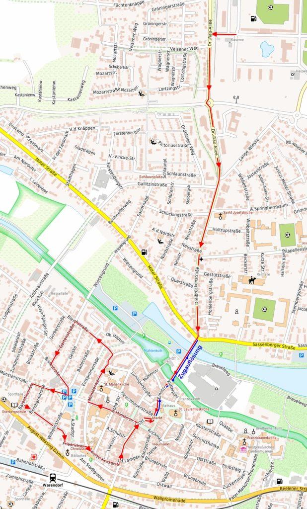 Für den Warendorfer Rosenmontagsumzug 2026 kann aktuell noch kein Zugweg bekannt gegeben werden. Auf Grund der laufenden Bauarbeiten der Stadtwerke für die neue Fernwärmeleitung (Emswärme) kann es auch für 2026 der Fall sein, dass eine veränderte Route genommen werden muss. Im engen Austausch zwischen dem Bürgerausschuss, den Stadtwerken und den beteiligten Behörden wird zur gegebenen Zeit eine mögliche Routenführung abgestimmt.